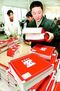 遼寧省印刷技術研究所近年來致力于圖像輸入輸出及印刷過程計算機軟件開發與硬件集成的研究與開發,并先后獲得64項科研成果獎。為我國的印刷技術的進步做出了積極的貢獻。圖為工作人員正在檢查采用新的裁切技術后的書籍裁切達標率。
