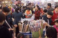 新學期開始了,新華書店的文具專柜前16日打起了擁堂,學生們爭購各種學習文具。瞧———新書的包裝紙尤為搶手。