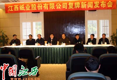 中國江西網12月27日南昌訊 (記者 周澤鋒 報道)江中集團今天在其生產基地——江中藥谷舉行新聞發布會,宣布由江中參與重組的*ST江紙股份12月28日上午9:30分在上海證券交易所恢復上市交易。至此,經過江西省和南昌市相關部門多方努力,最終與江紙的新股東江中集團一起,在即將徹底退市的邊緣把*ST江紙救了回來。
