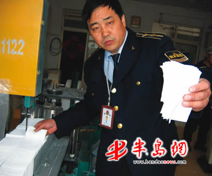 2月28日下午,市質(zhì)監(jiān)稽查局執(zhí)法人員又來到位于李滄區(qū)上苑路的某紙制品廠進(jìn)行檢查,發(fā)現(xiàn)該廠生產(chǎn)的白馬牌高級餐巾紙竟然是用和衛(wèi)生紙同樣原料的再生紙壓花制成的!當(dāng)執(zhí)法人員對該廠進(jìn)行查處時,該廠負(fù)責(zé)人竟這樣向執(zhí)法人員解釋用再生紙生產(chǎn)餐巾紙的原因:“好的紙進(jìn)價貴而且生產(chǎn)出來的餐巾紙還不好賣。”