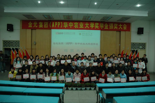 作為唯一躋身世界紙業(yè)十強(qiáng)的華人企業(yè),金光集團(tuán)APP始終懷著一顆感恩的心,積極推進(jìn)社會(huì)公益事業(yè)。這次在華中農(nóng)業(yè)大學(xué)設(shè)立金光獎(jiǎng)學(xué)金,是金光集團(tuán)關(guān)心教育事業(yè)、履行社會(huì)責(zé)任的又一重要舉措。APP每年將向華中農(nóng)業(yè)大學(xué)提供6萬(wàn)元的獎(jiǎng)學(xué)金,旨在獎(jiǎng)勵(lì)品學(xué)兼優(yōu)、家庭困難的優(yōu)秀學(xué)生。目前主要面向園藝林學(xué)學(xué)院和資源與環(huán)境學(xué)院。在7日晚上的頒獎(jiǎng)大會(huì)上,鐘晨等三名學(xué)生獲得每人2000元的特別優(yōu)秀獎(jiǎng),袁麗萍等54名同學(xué)各獲得了1000元的優(yōu)秀獎(jiǎng)。