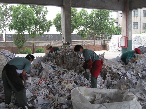 上面的照片拍的就是幾位工人在分揀廢紙。但如果因此就說這樣的企業(yè)是“血汗工場”,我覺得真的很不公平。相反,我反而認為玖龍紙業(yè)很了不起,利用回收的廢紙制漿造紙,最好地體現(xiàn)了循環(huán)經(jīng)濟和可持續(xù)發(fā)展的理念。