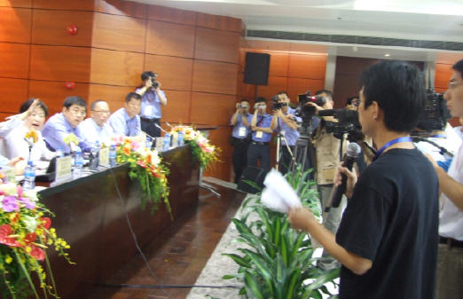 5月7日上午10點(diǎn),玖龍紙業(yè)在主辦公樓會(huì)議廳舉行新聞發(fā)布會(huì),來(lái)自于國(guó)內(nèi)(包括香港)各大新聞媒體及造紙行業(yè)主要媒體的百余名記者參加了新聞發(fā)布會(huì)。玖龍董事長(zhǎng)張茵女士首先就前期香港SCACOM的“血汗工廠”指責(zé),進(jìn)行了正面回應(yīng),并接受了記者的提問(wèn)。會(huì)上,記者針對(duì)前期公眾關(guān)心的問(wèn)題踴躍提問(wèn),氣氛十分熱烈。會(huì)后,在玖龍紙業(yè)工作人員的帶領(lǐng)下,各媒體記者分乘六輛中巴車(chē)參觀了玖龍的員工宿舍、餐廳和工廠主要工作場(chǎng)所。