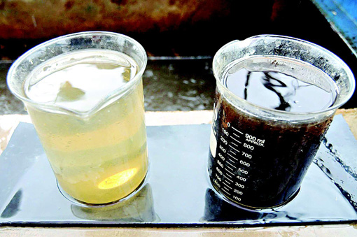 兩個(gè)燒杯從不同的地方裝滿水,并排放在地面,右邊一杯烏黑渾濁,左邊一杯淺清無(wú)雜質(zhì)。對(duì)一家主營(yíng)紙漿生產(chǎn)的企業(yè)來(lái)說(shuō),產(chǎn)生的污水在排放前能發(fā)生如此截然不同的變化,實(shí)現(xiàn)達(dá)標(biāo)排放,是企業(yè)注重環(huán)保,狠抓污水治理工作的結(jié)果。