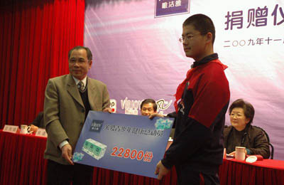 APP(中國(guó))代表徐錫土先生向?qū)W生遞交捐贈(zèng)牌