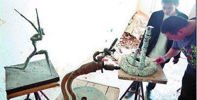 陳余介紹,這些廢紙箱、爛鐵絲、小鐵片、生銹的機器零部件等,都是從廢品收購站淘的,廢銅爛鐵經(jīng)焊接就成了形態(tài)各異的藝術(shù)品。陳余說,做雕塑最常用的就是石膏和玻璃鋼,這些材料價格不菲,一般做一個2公斤的雕塑就需100多元錢。而用廢紙打的紙漿照樣可以做雕塑,成本非常低。“藝術(shù)品在于它的創(chuàng)意,不在于原材料的奢侈。”陳余和他的同學(xué)們都認(rèn)為,藝術(shù)家更應(yīng)關(guān)注生態(tài)環(huán)境,減少污染和浪費,讓藝術(shù)傳遞低碳和環(huán)保的意義。
