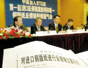 王雪華再次代理紙業(yè)的“國際官司”是在5年后。十分湊巧的是,2002年的這起案件因為時間特殊,也獲得了與1997年的案件相似的地位——中國入世后第一起反傾銷案。但此次的原告已經(jīng)與上次完全不同,糾紛產(chǎn)品也成了銅版紙。但是在被告方中,卻有一些熟悉的面孔。