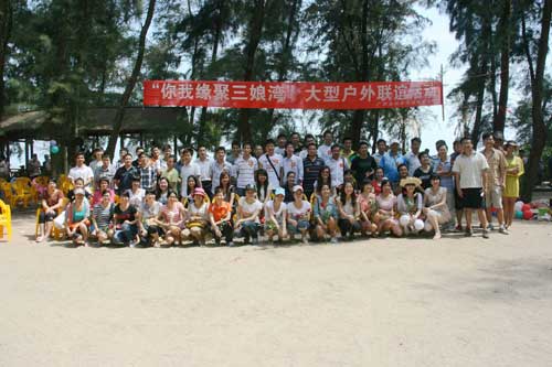 雙方青年員工在風景如畫的三娘灣景區上演了現場版的“非誠勿擾”,通過“幸福密碼”、“背靠背,心相印”、“為愛向前飛”、“心有靈犀”等一系列情感互動游戲,加深了彼此間的溝通交流,拉近了年輕人間的距離,在活動結束時,不少男士為自己的“心動女生”送上了玫瑰花。喜慶、融洽、和諧的節日氣氛,讓單身員工在浪漫的沙灘上告別彼此的陌生,種下了愛情的種子。