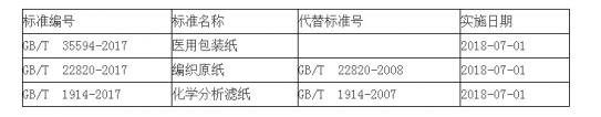 2017年12月29日,國家質量監督檢驗檢疫總局、國家標準化管理委員會發布公告(2017年第32號),批準發布了《養老機構服務質量基本規范》等1090項國家標準、4項國家標準修改單和51項國家標準外文版,其中涉及特種紙國家標準3項,具體見下表。