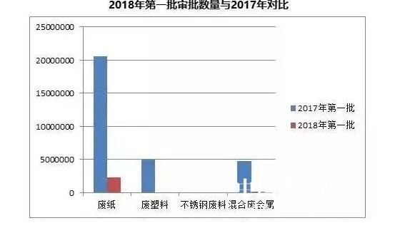 對比2017年的批文,廢紙準入數量和獲批企業名單均大幅縮水。地方固廢中心對企業監管加嚴,材料審批程序沒有完全走完,還停留在市級和省級固廢管理部門,是目前批文大減的原因之一。已經完成申報的企業,獲批數額也大為減少。據悉,環保部固廢中心將對申請企業嚴卡審批數量,2018年總目標基本控制在不超過2017年度實際進口量的一半水平。