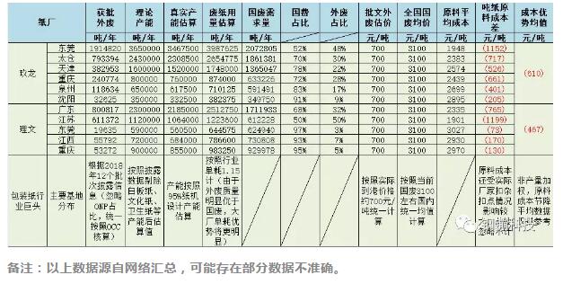未來原料結(jié)構(gòu)調(diào)整,國(guó)廢價(jià)格上漲幾率較大 按照國(guó)家政策要求,在2020年左右,我國(guó)完全禁止進(jìn)口外廢,在我國(guó)外廢大量減少,國(guó)廢原料無法滿足造紙需求的情況下,迫使造紙行業(yè)對(duì)原料進(jìn)行優(yōu)化。造紙?jiān)蟽?yōu)化主要從三方面考慮:紙漿(林木產(chǎn)業(yè))、國(guó)廢回收率提升、其他造紙材料的開發(fā)! 一是大力發(fā)展林木產(chǎn)業(yè),建立原生纖維基地林,培育速生、豐產(chǎn)、優(yōu)質(zhì)林木,走“林、漿、紙一體化”之路;那么目前來看,我國(guó)的晨鳴紙業(yè)、理文造紙、APP等紙企在以往的林木產(chǎn)業(yè)投資商都獲得很好的回報(bào),在2017年,這些紙企都在大力加碼這一產(chǎn)業(yè)。在2018年,大家應(yīng)該重點(diǎn)關(guān)注玖龍紙業(yè)在云南的投資洽談,其中有部分投資涉及林木產(chǎn)業(yè),是值得未來關(guān)注的。 二是加大廢紙回收的力度,大量使用木漿廢紙。這一方法得到我國(guó)政府的大力支持,例如政府提出的“兩網(wǎng)融合”等政策,都在間接支持其發(fā)展。在行業(yè)來看,重慶新建再生資源回收交易平臺(tái),2018年玖龍紙業(yè)也在天津洽談,意在投資500億,建立再生資源交易平臺(tái)。在社會(huì)上,互聯(lián)網(wǎng)+再生資源回收模式層出不窮,也是頗受社會(huì)資本關(guān)注。 三是充分利用蘆葦、麥草等資源上風(fēng),更加科學(xué)、公道地利用非木材纖維,從而減輕紙板木材纖維原料供給帶來的風(fēng)險(xiǎn)。這是一個(gè)較為優(yōu)勢(shì)的原料優(yōu)化路徑,在2017年永豐余就實(shí)現(xiàn)利用蘆葦造紙技術(shù)。這利于造紙行業(yè)發(fā)展。 但是,造紙?jiān)辖Y(jié)構(gòu)的調(diào)整是個(gè)漫長(zhǎng)的過程,無法快速有效的解決當(dāng)前的市場(chǎng)困境。中國(guó)目前出現(xiàn)了消費(fèi)降級(jí)現(xiàn)象,并導(dǎo)致終端品牌遲遲不能將原材料漲價(jià)的成本傳導(dǎo)給消費(fèi)者,下游二級(jí)紙板廠受到產(chǎn)能過剩和訂單不足的影響,一直采取低庫(kù)存運(yùn)行的策略,不再大量加倉(cāng),穩(wěn)守一個(gè)月左右的倉(cāng)位。 那么經(jīng)過上一輪高價(jià)搶國(guó)廢后,紙廠庫(kù)存得到補(bǔ)充,暫時(shí)相對(duì)緩和下來。等到下一輪補(bǔ)庫(kù)存,或?qū)⒗^續(xù)大幅上漲。 總結(jié):得國(guó)廢者將得天下,維持穩(wěn)定的廢紙供應(yīng)才是當(dāng)前乃至未來工作的重中之重 眾所周知,原料成本占總體制造成本比例約70%,因此對(duì)于原料價(jià)格的波動(dòng),時(shí)刻成為牽動(dòng)造紙廠最為關(guān)鍵的那根神經(jīng)。根據(jù)下表數(shù)據(jù)分析,當(dāng)前大廠明顯具備原料價(jià)格優(yōu)勢(shì),小廠原料成本相對(duì)較高,且成本控制能力缺乏。 表1
