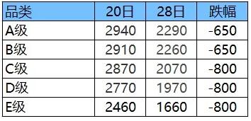 圖中數據截止2018年9月28日早上9:00 根據紙去哪了數據顯示,自9月以來,廢紙價格告別“過山車”,仿佛開始坐起了“滑滑梯”。但是9月20日開始,隨著越來越多的紙企加入下調隊伍,單次下調幅度也變得越來越大,這讓“滑滑梯”直接變成了“跳樓機”。 以浙江嘉興山鷹(吉安)紙業為例: