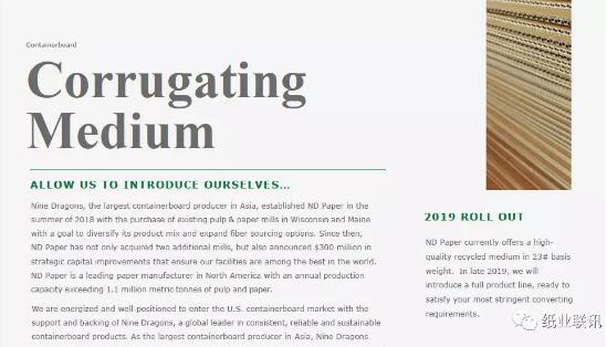 玖龍紙業(yè)子公司NDPaper已經(jīng)在美國(guó)市場(chǎng)銷售漂白牛皮箱板紙(bleachedlinerboard)和瓦楞紙。