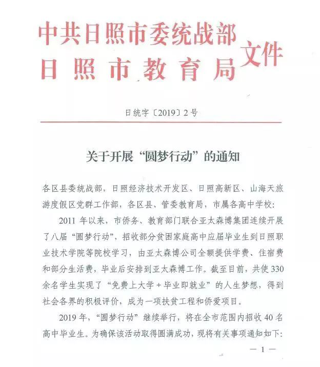 附:日照市委統戰部和日照市教育局關于開展“圓夢行動”的通知