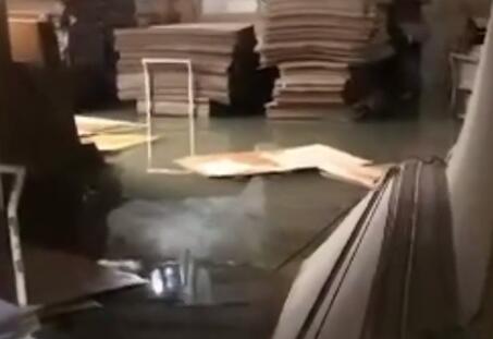 一板材廠庫房積水嚴(yán)重,車間很多材料和機(jī)器都泡了水。