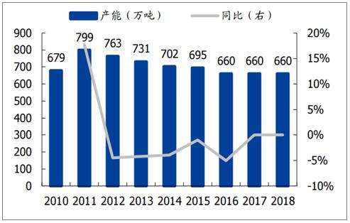 數據來源:公共資料整理 3.產能增長放緩,2019年無新增產能投放。 銅版紙產能自2012年持續下降,2018年產能未增長。2018年晨鳴投放100萬噸雙膠紙產能,其他上市紙企無新增雙膠紙產能,2018年雙膠紙產能凈增55萬噸至1031萬噸。根據當前大型紙廠擴建計劃,2019年沒有新增雙膠銅版紙產能。 雙膠紙產能及同比增速