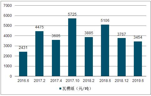 數(shù)據(jù)來(lái)源:公開(kāi)資料整理 包裝行業(yè)是萬(wàn)億級(jí)市場(chǎng),其中容量最大的紙包裝細(xì)分行業(yè)市場(chǎng)規(guī)模近3300億元,測(cè)算消費(fèi)電子,煙,酒,化妝品,食品/藥品等領(lǐng)域的高端包裝潛在市場(chǎng)規(guī)模已達(dá)千億元。交叉發(fā)展的下游需求結(jié)構(gòu)帶動(dòng)企業(yè)持續(xù)推進(jìn)業(yè)務(wù)多元化進(jìn)程,傳統(tǒng)消費(fèi)電子包裝龍頭裕同科技,勁嘉股份均持續(xù)推進(jìn)包裝多元化發(fā)展進(jìn)程。而伴隨業(yè)務(wù)放量和優(yōu)質(zhì)客戶的逐步導(dǎo)入,新業(yè)務(wù)毛利率也有望持續(xù)提升。 二、箱板瓦楞包裝 包裝行業(yè)龍頭的另一種業(yè)務(wù)擴(kuò)張模式是以合興包裝為代表的輕資產(chǎn)擴(kuò)張之路。合興包裝的PSCP平臺(tái)通過(guò)線上集采通、創(chuàng)客通、優(yōu)財(cái)通、創(chuàng)業(yè)通等平臺(tái)整合行業(yè)訂單與資源并為中小企業(yè)提供增值服務(wù),線下合伙人模式則可以最大化包裝企業(yè)間的資源分配和效率。 2019年以來(lái),國(guó)內(nèi)瓦楞及箱板紙市場(chǎng)價(jià)格呈現(xiàn)先漲后走勢(shì)。2019年1-2月,紙價(jià)呈震蕩上揚(yáng)趨勢(shì),主要因?yàn)樵蠌U紙價(jià)格上漲,成本增加支撐下紙企漲價(jià)意愿強(qiáng)烈。其次是因?yàn)榇汗?jié)期間停機(jī)檢修紙企較多,市場(chǎng)供應(yīng)略顯緊張。另外正處春節(jié)前后下游備貨旺季,市場(chǎng)需求擴(kuò)大。2019年3月份以后,隨著新增產(chǎn)能的投放以及下游需求縮減,紙價(jià)開(kāi)始呈下行走勢(shì)。 2019年上半年,全國(guó)瓦楞紙均價(jià)為3658元/噸,環(huán)比下滑13.62%,同比下跌17.24%;全國(guó)箱板紙均價(jià)在4043元/噸,環(huán)比下滑9.88%,同比下跌14.93%。 2016.6-2019.6瓦楞紙價(jià)格變化趨勢(shì)