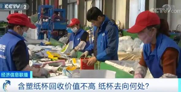 原來,紙杯中有一層膜,是一種叫聚乙烯的高分子材料,也是塑料的一種,可以防滲漏,可是分揀儲存紙杯和分離紙與塑料的成本很高,對于廢品回收人員來說,一次性紙杯回收費時費力又占地方不賺錢,所以,回收熱情并不高。 北京昌平的一家垃圾分類企業以上門回收的形式從居民手中收購廢品,將紙杯分揀出來和其他紙類一起打包賣給下游造紙廠,但企業表示沒有政府補貼也難以形成長效機制。