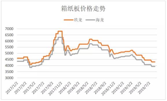 (全國包裝紙產銷量) 近兩年,受廢紙原料價格波動及環保等因素的影響,包裝紙價格大幅波動。 2017年,包裝紙價格大幅上漲,箱紙板價格從3800元/噸上漲至最高6800元/噸,瓦楞原紙價格從3000元/噸上漲至5700元/噸。 但2018年以來,包裝紙價格則開始下降,目前箱板紙價格已基本回落到4000元/噸左右,瓦楞原紙價格回落到3200元/噸左右。