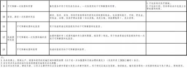 根據《征求意見稿》規定,禁止、限制使用的塑料制品包括不可降解塑料袋、不可降解一次性塑料餐具、賓館酒店一次性塑料用品、快遞塑料包裝等。其中,餐飲服務中禁用的不可降解一次性塑料包括餐盒 (含蓋)、碗(含蓋)、杯(含蓋)、盤、碟、刀、叉、勺等,但上述規定僅限于餐飲堂食服務,餐飲打包外賣服務除外。