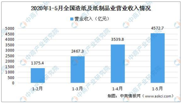 從行業(yè)效益情況來(lái)看:數(shù)據(jù)顯示,2020年1-5月,全國(guó)造紙及紙制品業(yè)營(yíng)業(yè)收入4572.7億元,同比下降11.5%;利潤(rùn)總額221.3億元,同比增長(zhǎng)5.6%。
