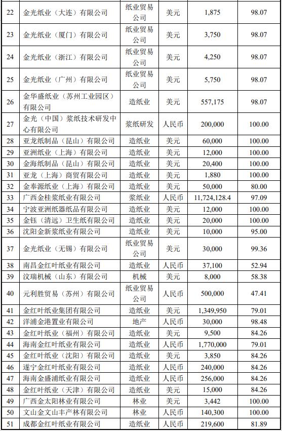 (金光紙業(yè)近三年的經(jīng)營狀況,單位:萬元) 這一業(yè)績處于什么水平呢?我們以玖龍紙業(yè)來進行對比,2019財年,玖龍紙業(yè)實現(xiàn)營收546.47億元,實現(xiàn)凈利潤38.6億元。可以看到,APP(中國)2019年的營收比玖龍紙業(yè)還要多100億元,可以說實力十分雄厚。 APP(中國)旗下公司大揭曉 在國內(nèi),APP(中國)現(xiàn)擁有寧波中華紙業(yè)有限公司、廣西金桂漿紙業(yè)有限公司、寧波亞洲漿紙業(yè)有限公司、金東紙業(yè)(江蘇)股份有限公司、海南金海漿紙業(yè)有限公司等企業(yè)為代表的具備世界領(lǐng)先水平的大型漿紙業(yè)企業(yè),以及大規(guī)模的現(xiàn)代化速生林區(qū)。 據(jù)其官網(wǎng)介紹,截至2018年底,APP(中國)擁有20多家全資和控股漿紙企業(yè),并擁有19家林業(yè)公司,總資產(chǎn)約1726億元人民幣,年加工生產(chǎn)能力約1100萬噸,生產(chǎn)的各類紙品滿足人們對印刷、包裝、辦公、衛(wèi)生等全方位需求。 更令人驚訝的是,《博匯紙業(yè)要約收購報告書》還公布了APP(中國)、APP(中國)控股股東富龍投資集團有限公司(香港),以及實控人黃志源先生所控制的核心企業(yè)、關(guān)聯(lián)企業(yè)情況。據(jù)測算,一共有144家企業(yè)在列,涉及造紙業(yè)、林業(yè)、紙業(yè)貿(mào)易、設(shè)備、化工、地產(chǎn)等多個產(chǎn)業(yè)。具體如下: