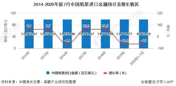 2020年1-7月中國紙漿進口量累計超1700萬噸