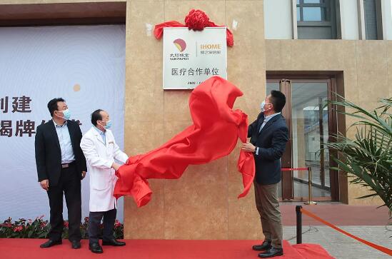 ▲揭牌儀式現場 太陽紙業副總經理劉澤華與兗州愛之家醫院院長朱繼國在熱烈的掌聲中隆重揭牌。