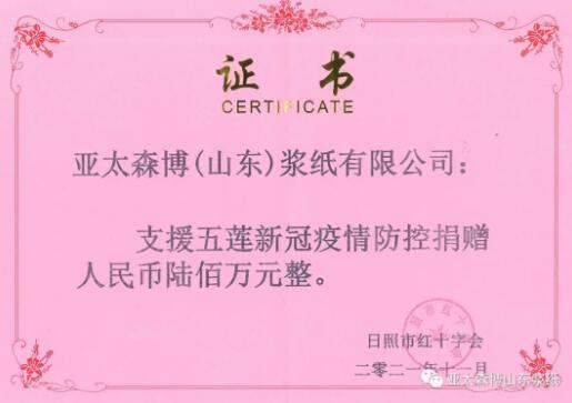 亞太森博“開發(fā)永續(xù)資源,創(chuàng)造美好生活”為宗旨,致力于成為規(guī)模最大、管理最佳、以可持續(xù)的資源開發(fā)為基礎(chǔ)的集團之一,保護環(huán)境,為客戶創(chuàng)造價值,實現(xiàn)利民、利國、利業(yè)。公司積極參與文教衛(wèi)生、扶貧救災(zāi)等弘揚社會正能量的公益慈善事業(yè)。截至目前,公司已在公益慈善事業(yè)方面投入超過1.2億元。亞太森博與日照心手相連,持續(xù)推動生產(chǎn)、生態(tài)、生活“三生共榮”,助力日照市經(jīng)濟社會高質(zhì)量發(fā)展。