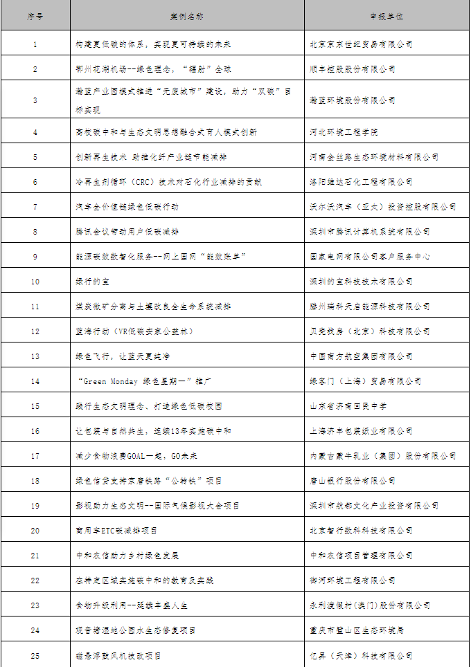 2021年5月31日,人民網(wǎng)、中華環(huán)保聯(lián)合會(huì)、生態(tài)環(huán)境部宣傳教育中心聯(lián)合啟動(dòng)了第二屆綠色經(jīng)濟(jì)發(fā)展論壇2021年度“碳中和典型案例”征集評(píng)審活動(dòng)。經(jīng)專家集體審議,并于10月13日至10月19日進(jìn)行公示后,現(xiàn)已產(chǎn)生2021年度“碳中和典型案例”入選名單。 感謝社會(huì)各界對(duì)本次活動(dòng)及碳減排等生態(tài)環(huán)境保護(hù)工作的大力支持! 特此通告。 附件:2021年度“碳中和典型案例” 人民網(wǎng)、中華環(huán)保聯(lián)合會(huì)、生態(tài)環(huán)境部宣傳教育中心 2021年11月19日 附件: 2021年度“碳中和典型案例” (排名不分先后)
