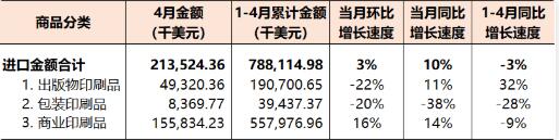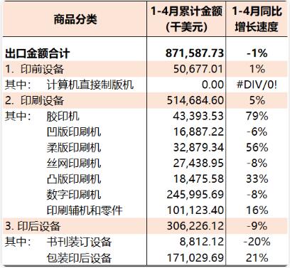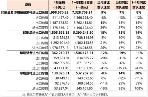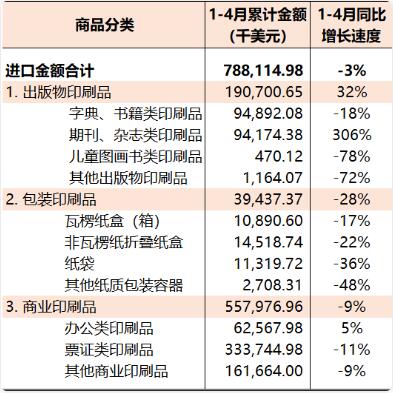 2022年1-4月,國內(nèi)印刷器材進(jìn)出口貿(mào)易順差2.45億美元(同比增長108%)。 本期觀察 受國內(nèi)外多重因素影響,國內(nèi)印刷產(chǎn)業(yè)相關(guān)商品進(jìn)出口貿(mào)易保持平穩(wěn)運(yùn)行的壓力顯著增加。2022年1-4月國內(nèi)印刷品、印刷裝備、印刷器材三大類商品進(jìn)出口雖然保持了8%的同比增長速度,但其相關(guān)商品的進(jìn)口和出口則呈現(xiàn)出與去年不同的運(yùn)行特點(diǎn): 三大類商品進(jìn)口速度均相對萎縮:1-4月份,國內(nèi)印刷產(chǎn)業(yè)相關(guān)商品進(jìn)口同比下降12%。其中,印刷品進(jìn)口同比下降3%、印刷裝備同比下降21%、印刷器材同比下降11%。 印刷品、印刷器材出口大幅增長、印刷裝備出口下降:在三大類商品進(jìn)口均從處下降的同時(shí),國內(nèi)印刷品出口增長17%、印刷器材出口增長39%,而印刷裝備出口下降1%。 亞洲市場穩(wěn)定、歐洲和北美的市場更加鞏固:1-4月份,國內(nèi)印刷品、印刷裝備、印刷器材進(jìn)出口在亞洲、歐洲和北美洲三大區(qū)域市場的分布為,亞洲43%、歐洲23%、北美洲24%。與去年同期相比(相關(guān)進(jìn)出口規(guī)模),亞洲市場增長2%、歐洲市場增長10%、北美洲市場增長17%。 與2021年同期相比,2022年1-4月國內(nèi)印刷品、印刷裝備、印刷器材進(jìn)口和出口增長較快的前五個(gè)商品商品類別如下: 進(jìn)口:期刊及雜志類印刷品(+306%)、柔版印刷機(jī)(+242%)、PS膠印版材(+58%)、辦公類印刷品(+5%)、水性噴墨墨水(+2%); 出口:膠印機(jī)(+79%)、柔版印刷機(jī)(+56%)、CTP膠印版材(+54%)、PS膠印版材(+40%)、紙袋(+32%)。 同期,國內(nèi)印刷品、印刷裝備、印刷器材進(jìn)口和出口相對萎縮的前五個(gè)商品商品類別如下: 進(jìn)口:凸印機(jī)(-98%)、CTP膠印版材(-81%)、兒童圖畫書類印刷品(-78%)、其他出版物印刷品(-72%)、包裝印后設(shè)備(-51%); 出口:其他出版物印刷品(-58%)、票證類印刷品(-57%)、期刊及雜志類印刷品(-49%)、書刊裝訂設(shè)備(-20%)、柔印版材(-19%)。