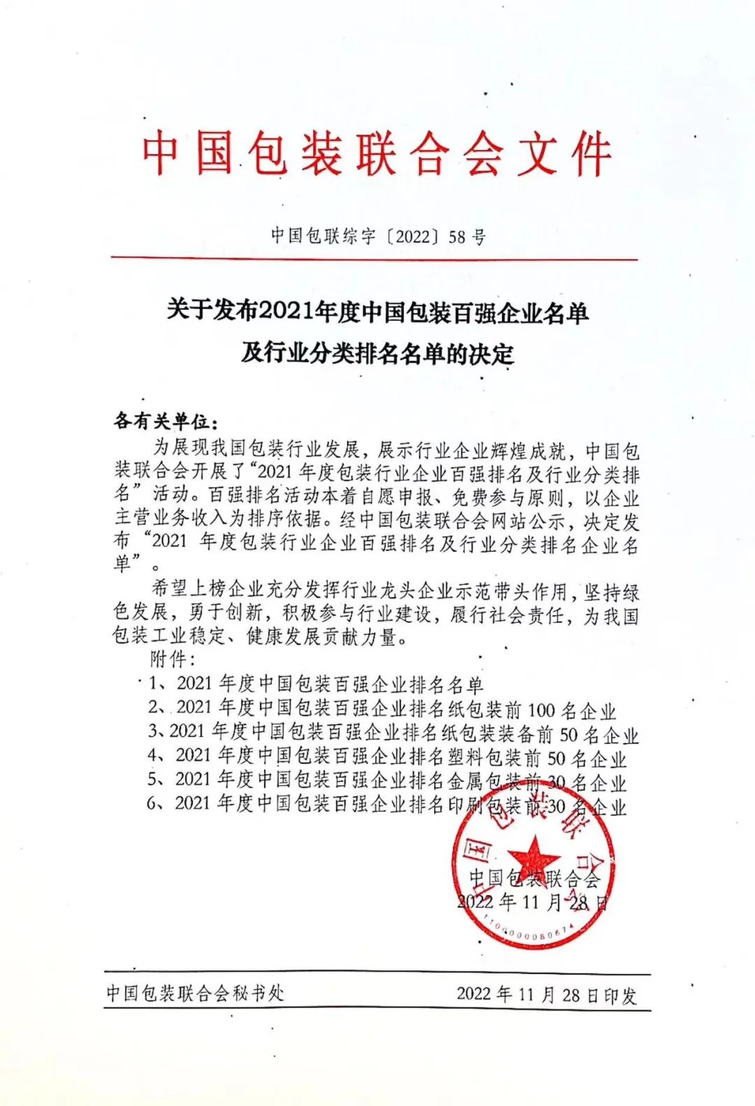 2021年度中國包裝百強(qiáng)企業(yè)排名:紙包裝企業(yè)前100強(qiáng)