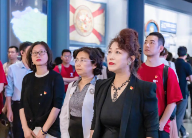 在中共一大紀(jì)念館內(nèi),金光集團(tuán) APP(中國)黨支部書記、副總裁翟京麗,上海市僑聯(lián)副主席、機(jī)關(guān)黨委書記陶勇,江蘇省僑聯(lián)黨組成員、副主席兼秘書長張霓,復(fù)旦大學(xué)發(fā)展研究院執(zhí)行副院長張怡,上海市外辦亞大處黨支部支委、副處長沙柳勇,樹根互聯(lián)黨委書記黃路川帶領(lǐng)各支部黨員,跟隨講解員的解說,以中國共產(chǎn)黨人的“初心使命”為主線,以《偉大的開端》為題,通過“前仆后繼、救亡圖存”,“民眾覺醒、主義抉擇”,“早期組織、星火初燃”,“開天辟地、日出東方”,“砥礪前行、光輝歷程”五個板塊,全面系統(tǒng)地了解了中國共產(chǎn)黨的誕生歷程和百年歷史。