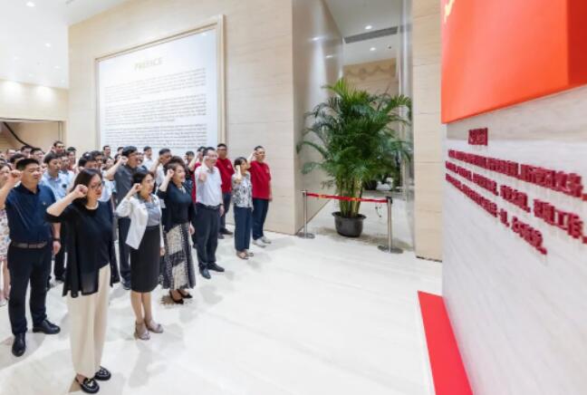 參觀結(jié)束時,所有黨員面對黨旗共同宣讀入黨誓詞,在鏗鏘有力的宣誓聲中回望初心,匯聚起矢志不渝跟黨走的磅礴力量。