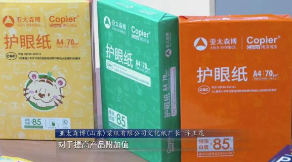 亞太森博(山東)漿紙有限公司文化紙廠長許正茂:該生產線以100%人工種植林纖維作為原料,滿足市場對綠色低碳、高標準環保高端紙品的需求,亞太森博系列復印紙目前占有全國市場份額的33%。 該文化用紙生產線去年5月開工建設,今年8月順利開機,歷時僅15個月,創造了同類型紙機建設項目的最快速度。面世3個多月,“日照造”亞太森博文化紙就已成為北方文化紙市場的生力軍,亞太森博由“漿”向“紙”延鏈、補鏈、強鏈邁出具有里程碑意義的關鍵一步。