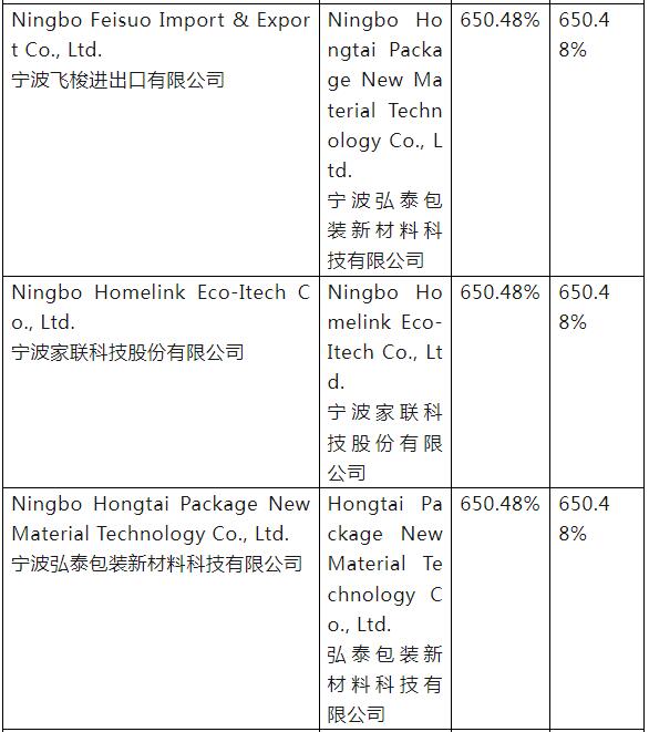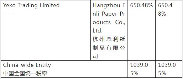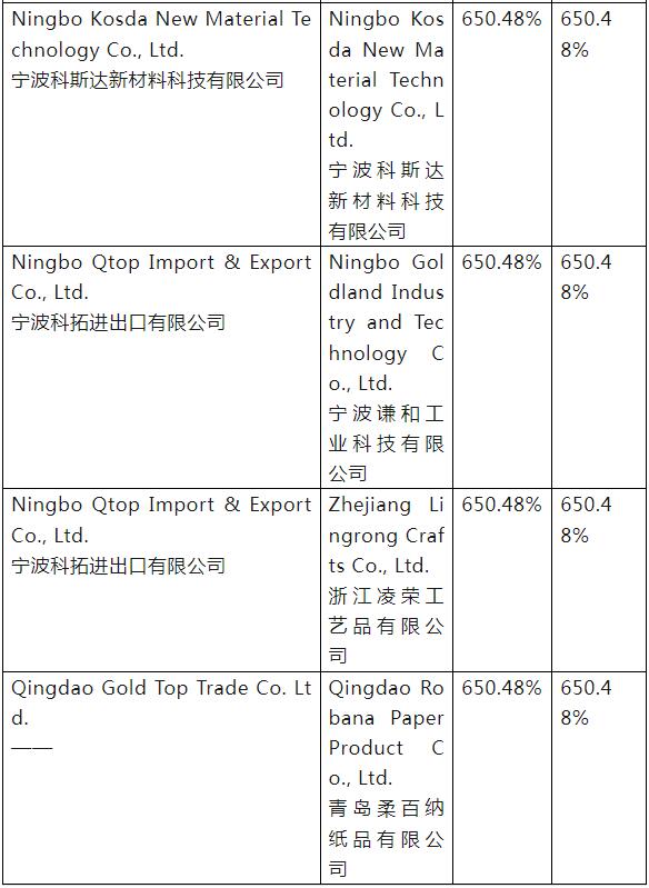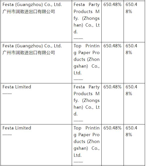 2024年8月30日,美國商務(wù)部宣布對(duì)進(jìn)口自中國、泰國和越南的紙盤(Certain Paper Plates)作出反傾銷初裁,初步裁定中國生產(chǎn)商/出口商的傾銷率為0.00%~1039.05%(抵消補(bǔ)貼后的保證金調(diào)整為不適用~1039.05%,具體稅率詳見下表)、泰國生產(chǎn)商/出口商的傾銷率為4.23%~73.17%、越南生產(chǎn)商/出口商的傾銷率為0.00%~165.27%(抵消補(bǔ)貼后的保證金調(diào)整為0.00%~159.79%)。美國商務(wù)部預(yù)計(jì)將于2025年1月13日對(duì)本案作出反傾銷終裁。本案涉及美國海關(guān)編碼4823.69.0040項(xiàng)下產(chǎn)品。
