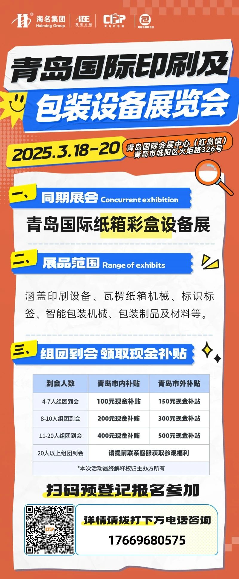 展會(huì)介紹 2025海名·第三屆青島國(guó)際印刷及包裝設(shè)備展覽會(huì) 同期展會(huì):青島國(guó)際紙箱彩盒設(shè)備展覽會(huì) 展會(huì)時(shí)間:2025年3月18-20日 展會(huì)地點(diǎn):青島國(guó)際會(huì)展中心(紅島館)-城陽(yáng)區(qū)火炬路326號(hào) 2025海名·第三屆青島國(guó)際印刷及包裝設(shè)備展覽會(huì)將覆蓋印刷包裝完整的上下游產(chǎn)業(yè)鏈,涵蓋印刷設(shè)備、瓦楞紙箱/彩盒機(jī)械、標(biāo)識(shí)標(biāo)簽、智能包裝機(jī)械、包裝制品及材料、軟包裝設(shè)備等全新題材,幫助行業(yè)企業(yè)找到新的發(fā)展機(jī)遇。屆時(shí),青島展將以“創(chuàng)新突破、融合、發(fā)展”為主題,呈現(xiàn)印包制造全產(chǎn)業(yè)鏈的新理念、新產(chǎn)品和新技術(shù)。重點(diǎn)關(guān)注智能制造、工業(yè)4.0、創(chuàng)新包裝以及減塑降排與可持續(xù)發(fā)展等熱點(diǎn)話題,并為全球展商和買家搭建“智”造升級(jí)的對(duì)接平臺(tái)。