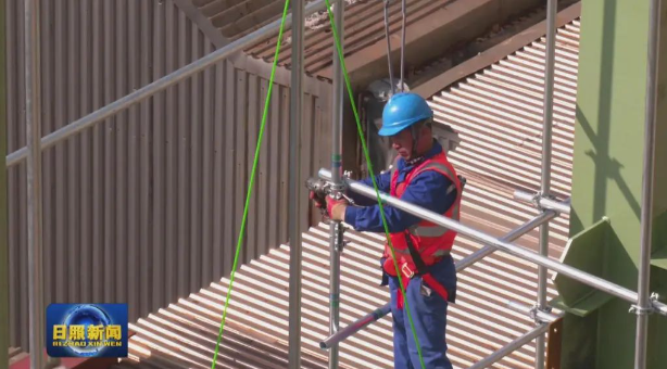 在亞太森博(山東)漿紙有限公司,工人們正在逐步將兩個脫硝倉的接口連接到一起,這是亞太森博二期堿爐脫硝節(jié)能設(shè)備更新技改項目的重要內(nèi)容。