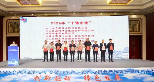 5月8日-9日,以“創(chuàng)新驅(qū)動、綠色發(fā)展”為主題的“2025山東省造紙行業(yè)年會暨山東省造紙產(chǎn)業(yè)綠色低碳高質(zhì)量發(fā)展大會”在德州成功召開。會上,中國造紙協(xié)會副理事長、山東省造紙行業(yè)協(xié)會專職副會長趙振東宣讀了《山東協(xié)會認定“雙十”標桿企業(yè)——山東省造紙行業(yè)協(xié)會“2024年‘十強企業(yè)’‘十佳企業(yè)’”通報》,其中,亞太森博(山東)漿紙有限公司被認定為“2024年‘十強企業(yè)’”。