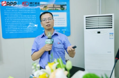 文宣經(jīng)理何玉才先生 博匯紙業(yè)研發(fā)經(jīng)理全吉平先生帶來了本次論壇的技術(shù)核心分享——EPP機內(nèi)回收技術(shù)。他通過生動的工藝流程演示和數(shù)據(jù)對比,深入淺出地講解了如何實現(xiàn)生產(chǎn)過程中95%的損紙回收率這一技術(shù)突破。