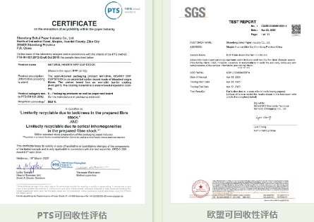 金鳳凰®水性阻隔食品卡EPP已獲得多項國際權(quán)威認證,包括PTS可回收性評估、歐洲可回收性評估、ABA工業(yè)堆肥認證等。這些認證表明該產(chǎn)品不僅符合國內(nèi)環(huán)保要求,也達到了國際標準。 與傳統(tǒng)PE淋膜工藝相比,EPP生產(chǎn)技術(shù)具有減塑、降碳等優(yōu)勢,同時具備可回收,易成型,無硅、無蠟、無氟等特性。