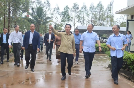 9月25日下午,老撾中央政治局委員、副總理沙倫賽·貢馬西率調(diào)研組蒞臨公司老撾基地調(diào)研指導(dǎo),老撾工貿(mào)部、財(cái)政部及沙灣拿吉省、縣相關(guān)部門(mén)主要領(lǐng)導(dǎo)共計(jì)60余人陪同參加本次調(diào)研,公司副總經(jīng)理陳文俊熱情接待并做工作匯報(bào)。